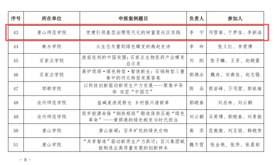 《党建引领基层治理现代化的祥富里社区实践》入选新时代高校思想政治理论课河北伟大实践教学案例