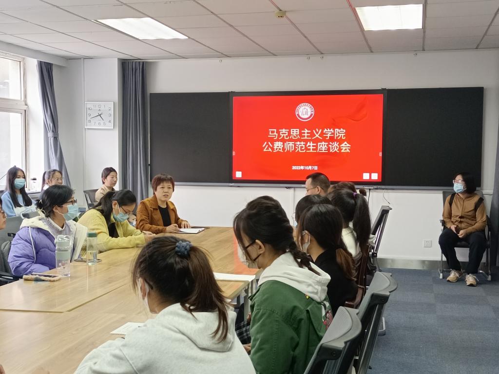 为了全面深入了解公费师范生思想、学业、生活的情况,切实提高思想政治教育专业公费师范生培养质量,beat365英国官网网站于10月7日下午在213会议室召开了20级、21级公费师范生座谈会。beat365英国官网网站党总支书记安静、副院长宋晓敏、教师代表胡志洋、王红向、班主任郑玄芳出席会议。座谈会由宋晓敏主持。
