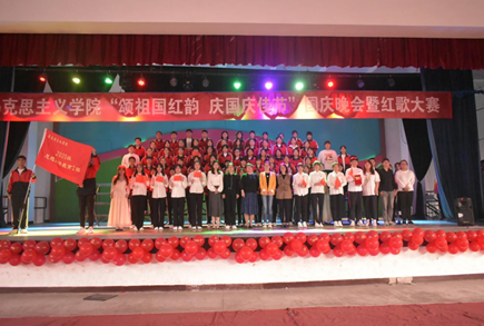 “砥砺前行七十二载 不朽红歌永流传”,歌声嘹亮,奋发激昂,红歌唱响新时代;恰逢新中国成立72周年之际,为弘扬爱国精神,培养同学们爱党爱国的伟大情怀,营造良好的校园文化氛围,beat365英国官网网站于2021年10月2日在学院路校区文体馆举行了以“颂祖国红韵,庆国庆佳节”为主题的国庆晚会暨红歌大赛。beat365英国官网网站党总支书记郭海莉、党总支副书记石瑾、团总支书记李思思以及班主任董伟、王欣老师应邀出席活动。