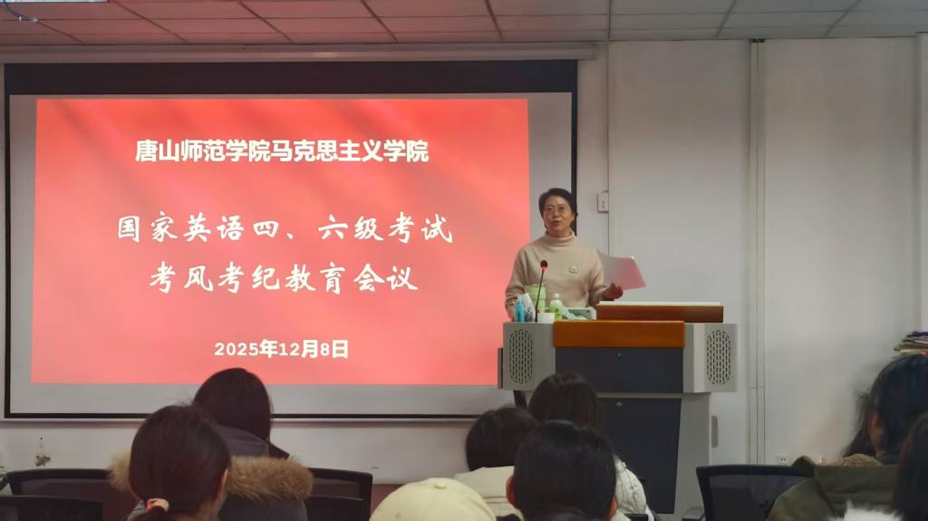 在2025年下半年全国大学英语四六级考试(12月13日)来临之际,为进一步端正考风、严肃考纪,营造公平有序的考试环境,切实提升考生遵纪守法意识,强化诚信应考观念,beat365英国官网网站于2025年12月8日在502会议室开展四六级考试考风考纪教育会。