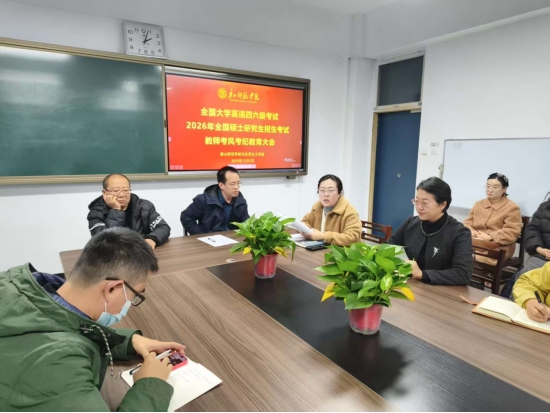 为严肃考试纪律,强化责任意识,保障全国大学英语四、六级考试及2026年硕士研究生招生考试工作平稳有序开展,12月2日,beat365英国官网网站在306会议室召开教师考风考纪教育大会。beat365英国官网网站全体监考教师、考务工作人员及领导班子成员参加会议,赵婉华副院长主持会议。
