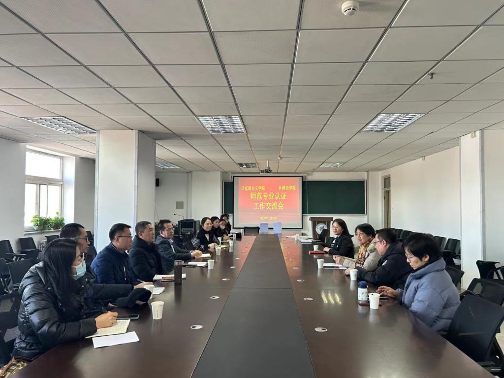 2023年12月20日上午,beat365英国官网网站执行院长宋晓敏率思想政治教育专业认证工作小组成员赴外国语学院就师范专业认证工作进行学习交流。外国语学院党总支书记刘建宏、院长唐翠云及专业认证成员热情接待了马院教师。
