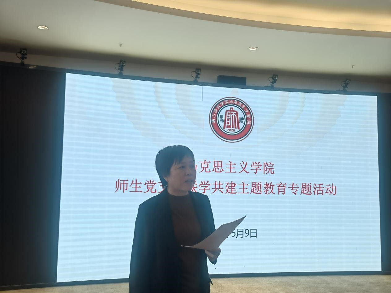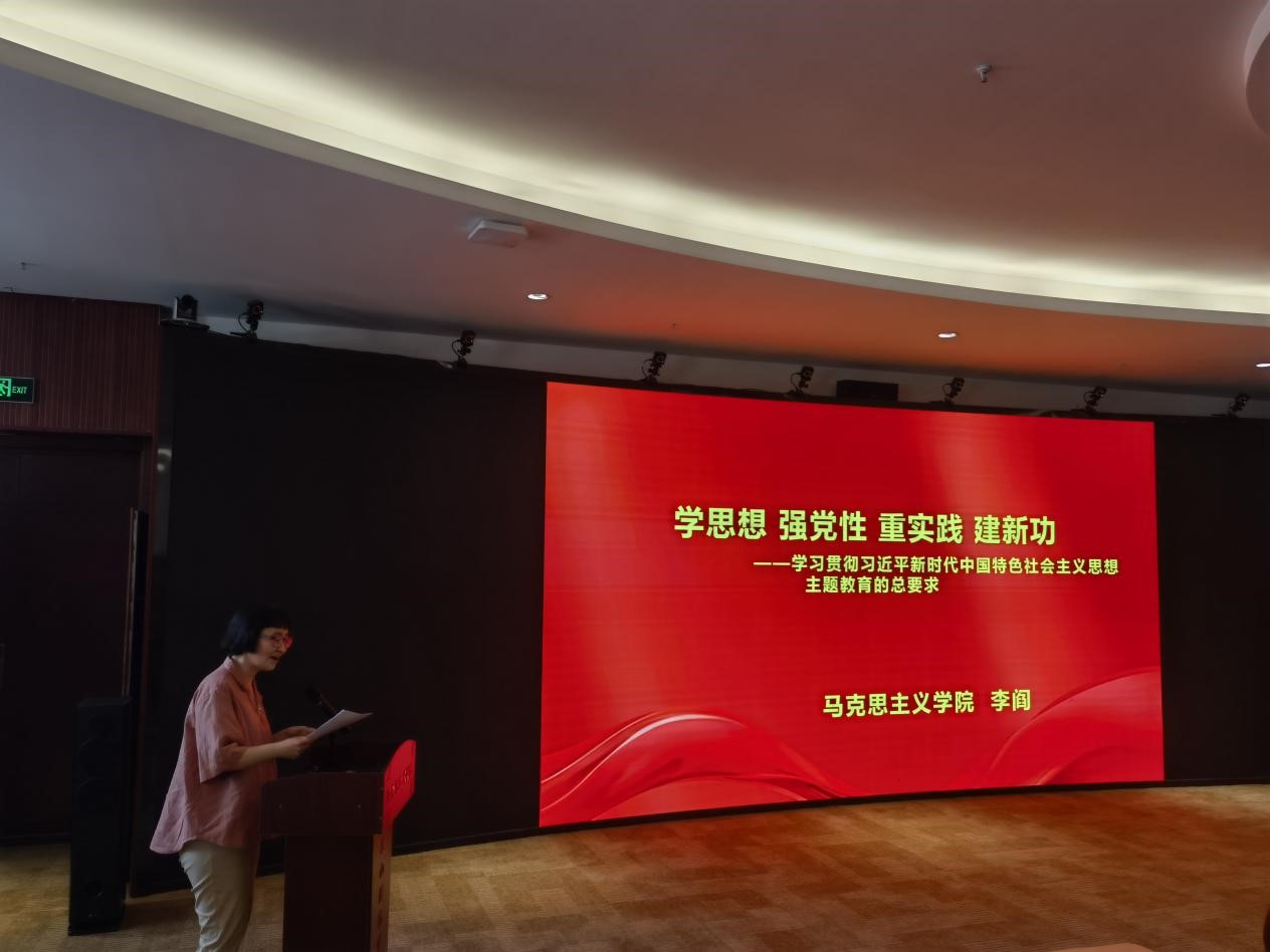 beat365英国官网网站教师第三党支部书记李阎以《学思想 强党性 重实践 建新功——学习贯彻习近平新时代中国特色社会主义思想主题教育的总要求》为题讲授专题党课。她分别从“为什么学——主题教育的重大意义”“怎么学——主题教育的总要求”“学什么——理论学习权威教材”三个方面作主题教育学习辅导,指出作为思政课教师、思政专业的学生,在学习过程中应该“带着自信学、带着底气学、带着思考和方法学、带着使命学”,并结合《习近平新时代中国特色社会主义思想概论》课程教学情况、学情调研情况等进行学习、工作心得分享,突出了beat365英国官网网站依托学科优势,通过深入学习贯彻习近平新时代中国特色社会主义思想,将能够在理论阐释和理论宣讲方面发挥独特作用。