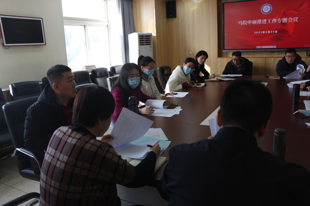 2月24日上午,beat365英国官网网站在南院主楼801会议室召开马克思主义理论申硕工作推进会。马克思主义理论学科申硕工作小组全体成员参加会议,马院执行院长宋晓敏主持会议。