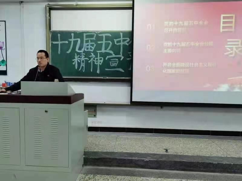 12月2日由王学增院长主讲,宣讲会上,王学增院长首先对同学们是否了解十九届五中全会进行提问,然后从深刻认识我国“十三五”时期经济社会发展取得的重大成就、准确把握“十四五”时期面临的国际国内形势入手,围绕2035年远景目标和“十四五”时期经济社会发展的指导思想、遵循原则、主要目标和重点任务,就贯彻新发展理念、构建新发展格局、创新在现代化全局中的核心地位、促进共同富裕、繁荣发展文化事业、推动绿色发展、统筹发展和安全、坚持党的全面领导等方面,对全会精神进行了系统宣讲和阐释。