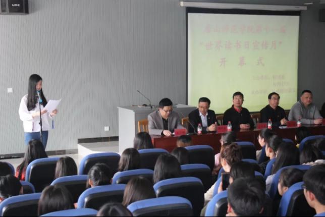 为激发全校师生的读书热情,营造健康积极向上的校园文化氛围,由我校团委和图书馆主办,社会科学部承办的beat365英国官网网站第十一届世界读书日宣传月暨第五届以“手捧万卷书,兼修品与行”为主题的读书节开幕式于2018年4月18日在图书馆学术报告厅隆重举行。
