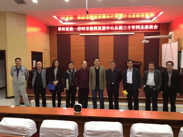 沙河市教师发展中心参加调研会 领导有:校长董少平、副校长侯社林和王振洲、办公室主任申利广、培训处主任王德平。