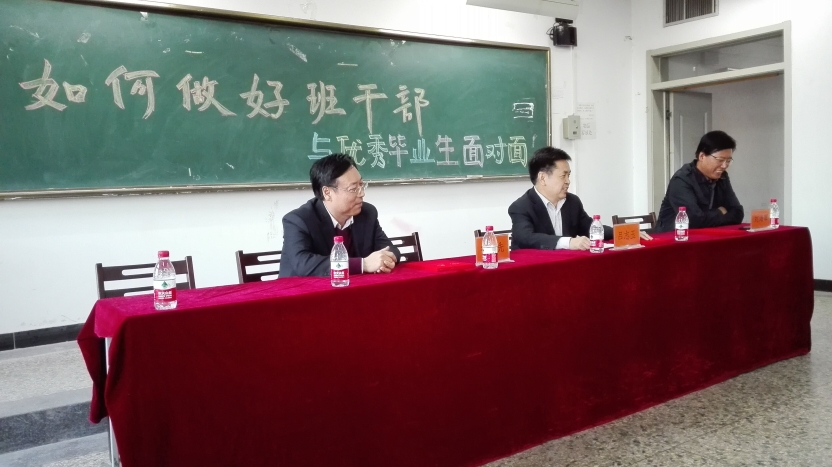 活动的主题是“如何做好学生干部”。首先,由吕志玉结合大学和工作的感受从四个方面谈了如何做好学生干部:学生干部自身的评价、师生对学生干部的评价、学生干部应具备的品质以及负面清单等,并向同学们推荐了影响自己人生的十本书。接着,徐福先和刘海军联系自己担任学生干部和毕业后近三十年的工作经历与感受,围绕为什么读书和怎样读书、如何处理好学习和工作、工作的主动和被动以及学生干部之间的团结与合作等方面与同学们进行了深入交流,同时告诉同学们学生干部生涯让他们受益终生。最后,针对同学们提出的问题,三位优秀毕业生耐心地给予了解答,并向同学们送上了自己的祝愿。