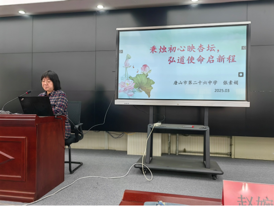 随后,唐山市第二十六中学的张素娟老师带来了题为《秉烛初心映杏坛,弘道使命启新程》的宣讲。张老师从教41年,担任班主任31年,曾获得全国先进工作者等多项荣誉。她用亲身经历诠释了教师的高尚师德和对教育事业的热爱与坚守,激励着在场的每一位教育工作者。